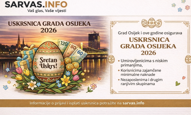 Umirovljenici koji primaju inozemnu mirovinu ili rade u nepunom radnom vremenu trebaju podnijeti prijavu Upravnom odjelu za socijalnu zaštitu, umirovljenike i zdravstvo Grada Osijeka. Rok za podnošenje prijave je 3. travnja 2026. godine.